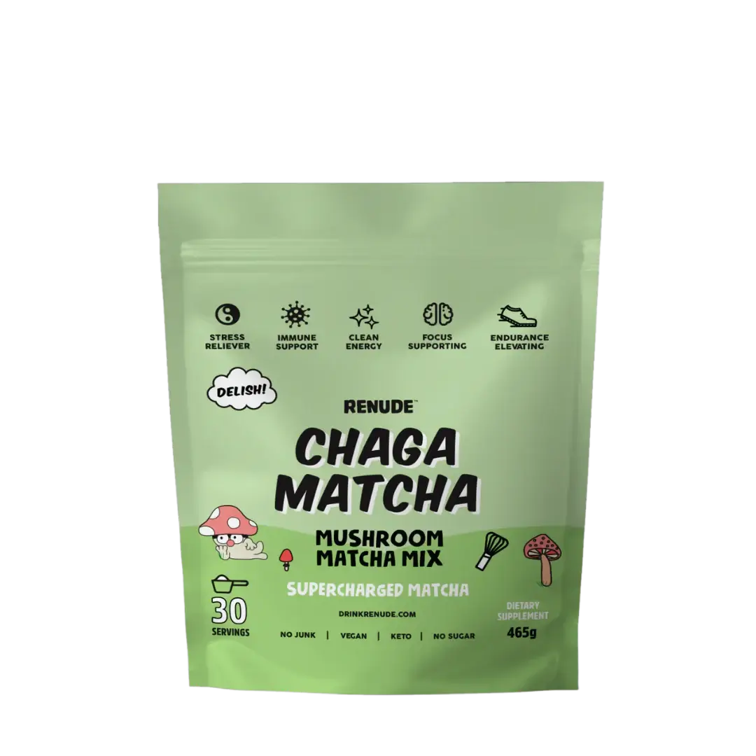 One serving of Chaga Matcha is about 60mg of caffeine. It’s worth noting that you’re also getting a dose of L-Theanine which slows the absorption of caffeine and results in a clean, jitter-free, focused feeling. Pretty cool, right?