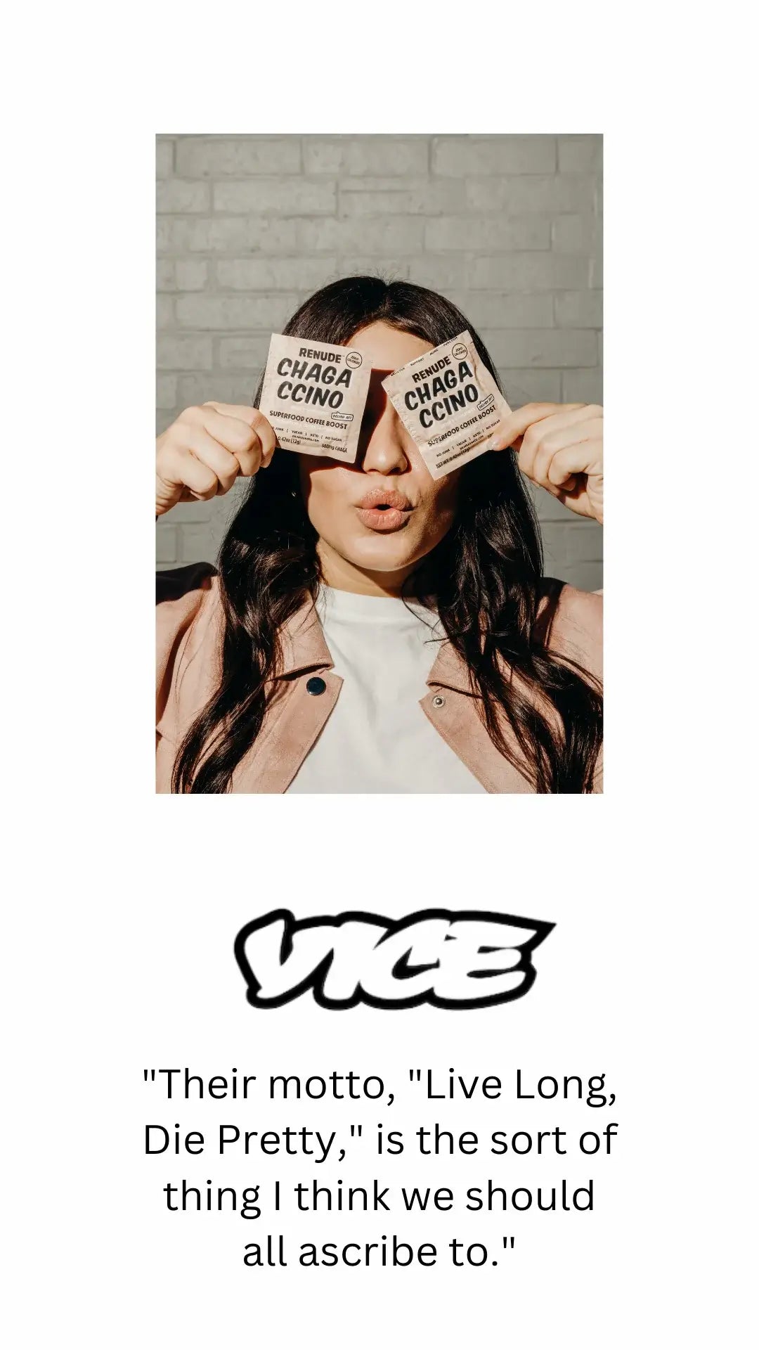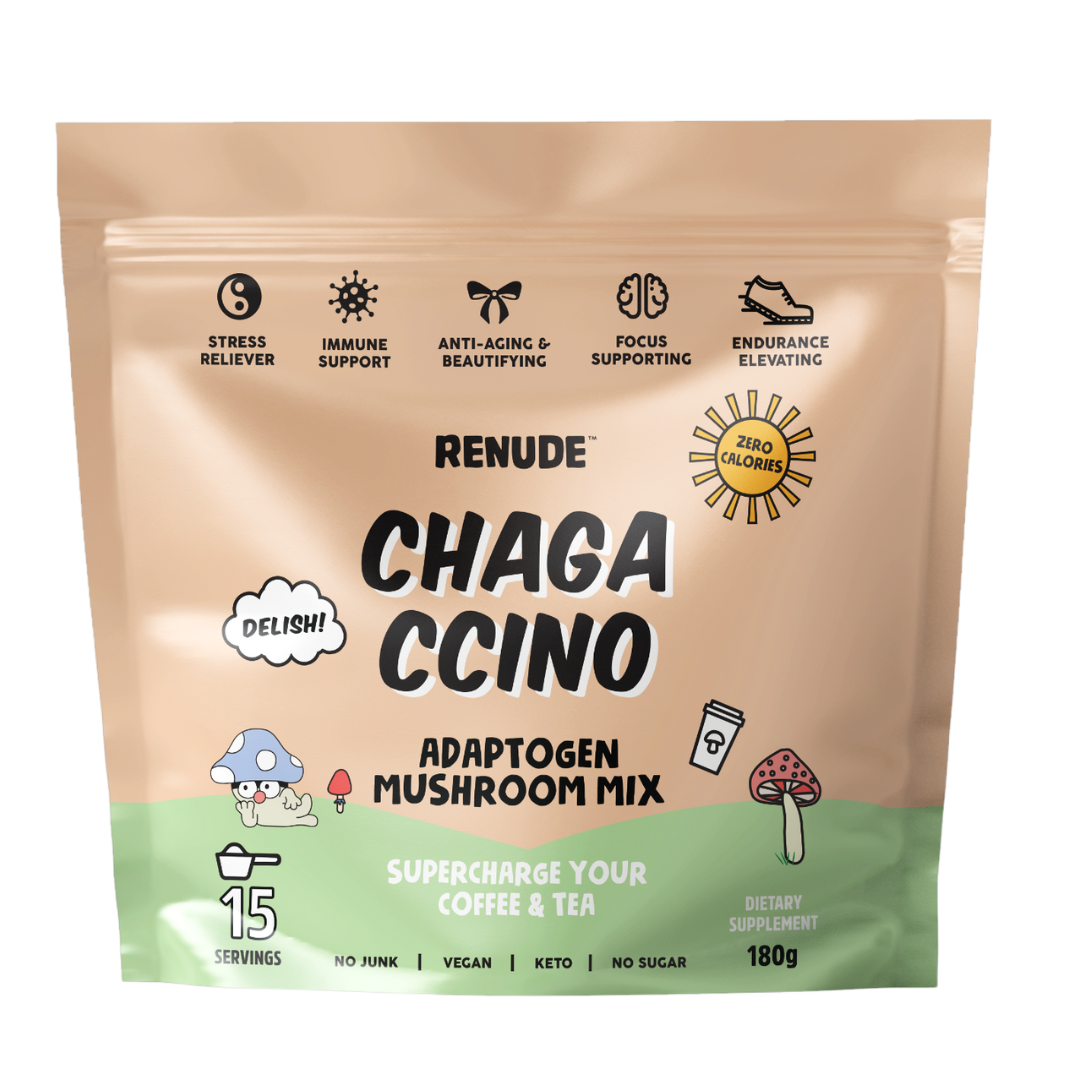 When mixed with espresso, milk, and ice, the Chagaccino transforms a basic latte into a deliciously nutty, and chocolatey mocha alternative. The only difference is it’s zero calories, vegan, keto friendly, AND super good for you. That’s why we say, ‘LiveLong, Die Pretty!’
